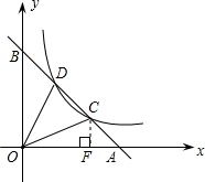 (2)根据A、B点坐标得到△AOB的面积,由△AOC、△COD、△DOB的面积都相等可得S△AOC=$\frac{1}{3}$S△AOB,即可得到$\frac{1}{2}$OA×CF=$\frac{1}{3}$×$\frac{1}{2}$OA×OB,代入相应线段的长即可求出CF的长,也就得到C点的纵坐标,再把C点的纵坐标代入直线AB的解析式中可以算出C点的横坐标,把C点的坐标代入反比例函数关系式即可得到答案.