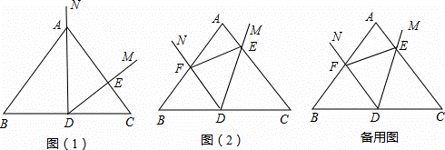(2)如图(2),将∠MDN绕点D沿逆时针方向旋转,DM,DN分别交线段AC,AB于E,F点(点E与点A不重合),不添加辅助线,写出图中所有的相似三角形,并证明你的结论.