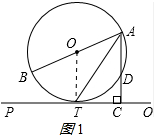 分析 (1)由同圆的半径相等和角平分线证出∠OTA=∠CAT,得出OT∥AC,由PQ⊥AC,证出PQ⊥OT,即可得出结论;