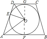 分析 连接OG、OF.由DC∥AB可知∠CDA+∠DAB=180°,然后证明△DEO≌DOG,从而得到∠EDO=$\frac{1}{2}$∠ADC,同理:∠DAO=$\frac{1}{2}$∠DAF,于是可证明∠AOD=90°,然后利用切线的性质可证明∠OEA=90°,接下来再证明∠AOE=∠ADO,故此可得到∠AOE=$\frac{1}{2}$∠ADC.