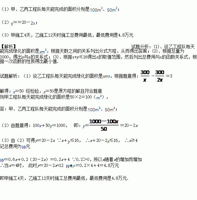 (1)求甲、乙两工程队每天能完成的绿化的面积;