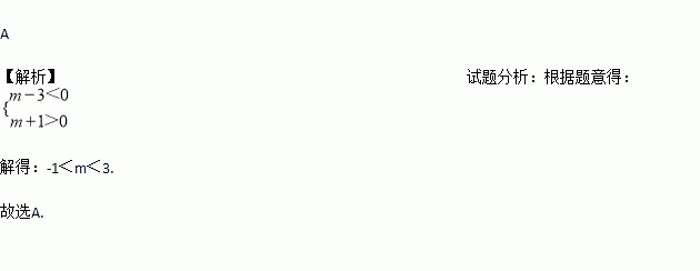 A. -1<m<3 B. m>3 C. m<-1 D. m>-1