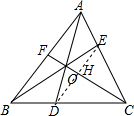 分析 连接DE,根据已知条件得到$\frac{CD}{BD}=\frac{CE}{AE}=2$,推出DE∥AB,证得△DOE∽△AOB,△EOH∽△BOF,△ODH∽△OAF,得到比例式$\frac{OE}{OB}=\frac{OD}{AO}=\frac{DE}{AB}$=$\frac{2}{3}$,$\frac{HE}{BF}=\frac{OH}{OF}$,$\frac{DH}{AF}=\frac{OH}{OF}$,由等量代换得到$\frac{EH}{DH}=\frac{BF}{AF}$,由于△CHE∽△CFA,△CHD∽△CFB,同理:$\frac{EH}{AF}=\frac{DH}{BF}$,等量代换得到$\frac{BF}{AF}=\frac{AF}{BF}$,证得AF=BF,即可得到结论.