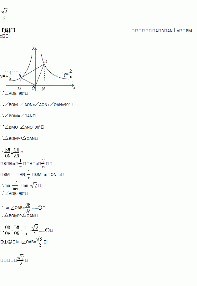 的图象交于B、A两点,则tanA=_____________.