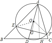 连结OE、OF,作OG⊥EF于G,AH⊥BC于H,如图,设⊙O的半径为r,