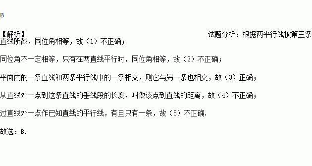(3)平面内的一条直线和两条平行线中的一条相交,则它与另一条也相交;