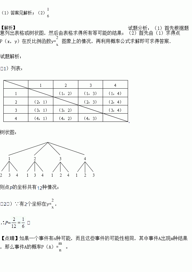 (l)请你用画树状图或列表的方法,写出点M所有可能的坐标;