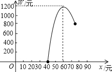 (3)把W=-3x2+360x-9600配成顶点式为W=-3(x-60)2+1200,则可确定顶点坐标;把x=40和70分别代入计算,求出对应的W的值;然后根据x的范围画草图;