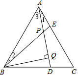 (2)根据三角形的外角的性质,∠BPQ=∠2+∠3=∠1+∠3=∠BAC=60°,即可证明.