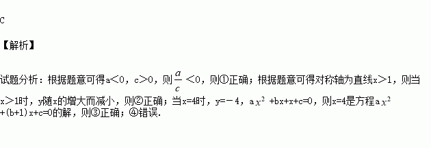 是方程ax2+(b+1)x+c=0的一个根;(4)当﹣1<x<4时,ax2+(b+1)x+c>0.其中正确的个数为( )