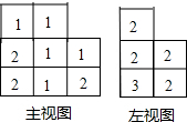 点评:本题考查几何体的三视图画法.由几何体的俯视图及小正方形内的数字,可知主视图的列数与俯视数的列数相同,且每列小正方形数目为俯视图中该列小正方形数字中的最大数字.左视图的列数与俯视图的行数相同,且每列小正方形数目为俯视图中相应行中正方形数字中的最大数字.