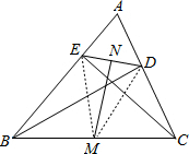 (3)由直角三角形斜边上的中线等于斜边的一半,求出EM=BM,CM=DM,根据三角形内角和定理求出∠ABC+∠ACB,即可求出∠EMD,根据等边三角形的判定得出即可.