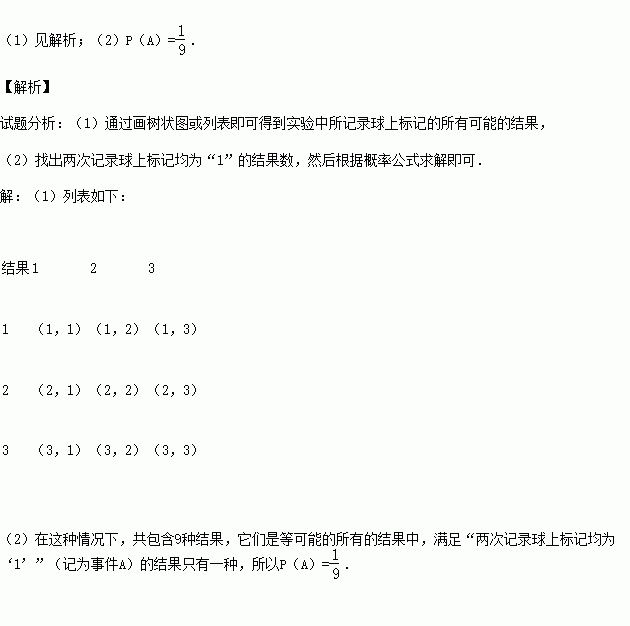 一只不透明的袋子中,装有三个分别标记为“1”、“2”、“3”的球,这三个球除了标记不同外,其余均相同.搅匀后,从中摸出一个球,记录球上的标记后放回袋中并搅匀,再从中摸出一个球,再次记录球上的标记.