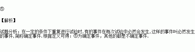 ⑤367个人中至少有2个人生日相同;⑥一个抽奖活动的中奖率是1%,参与抽奖100次,会中奖.其中属于确定事件的是 .(填序号)