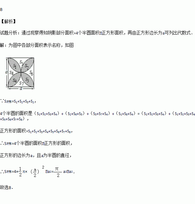 如图,已知正方形的边长为a,以各边才为直径在正方形内画半圆,所围成的图形(图中阴影部分)的面积为( )