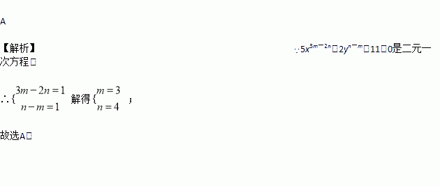 若5x3m-2n-2yn-m+11=0是二元一次方程,则 ( )
