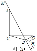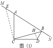 分析 (1)过点C作CE⊥CB于点C,与MN交于点E,证明△ACE≌△DCB,则△ECB为等腰直角三角形,据此即可得到BE=$\sqrt{2}$CB,根据BE=AB-AE即可证得;