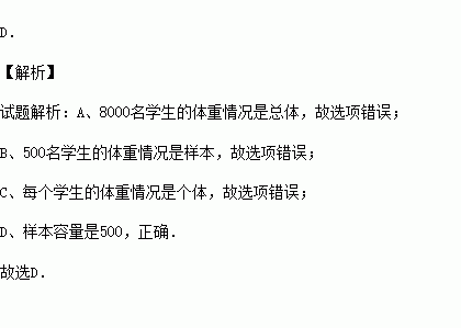 为了了解某市八年级8000名学生的体重情况,从中抽查了500名学生的体重进行统计分析,在这个问题中,下列说法正确的是( )