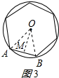 在正六边形中,作OM⊥AB于M,连接OA、OB,如图3所示:![]()