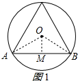 在正三角形ABC中,作OM⊥AB于M,连接OA、OB;如图1所示: