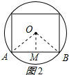 在正方形中,作OM⊥AB于M,连接OA、OB,如图2所示: