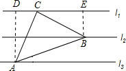 分析:过A作AD⊥l1交于点D,过B作EF⊥l1交于点E,则可证得△ADC≌△CEB,从而可得CE=AD=2,CD=BE=1,可求得AC的长,进一步可求得△ABC的面积.