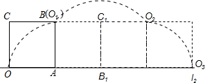 ½â´ð ½â£º¢ÙÈçͼËùʾ£¬Õý·½ÐÎֽƬOABC¾¹ý3´ÎÐýת£¬¶¥µãOÔ˶¯ËùÐγɵÄͼÐÎÊÇÈý¶ÎÔ²»¡£¬![]()