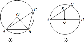 (2)如图②,AD、AC分别是⊙O的直径和弦,且∠CAD=30°,OB⊥AD,交AC于点B,若OB=5,则BC的长等于