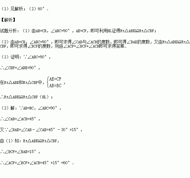 (2011•江津区)在△ABC中,AB=CB,∠ABC=90°,F为AB延长线上一点,点E在BC上,且AE=CF.