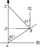 分析 过点B作BD⊥AC于D,解Rt△ABD,得出AD=$\frac{1}{2}$AB=30,BD=$\sqrt{3}$AD=30$\sqrt{3}$,再由△BCD是等腰直角三角形,得到BC=$\sqrt{2}$BD=30$\sqrt{6}$.