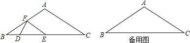 6.如图,在△ABC中,AB=AC=10cm,BC=16cm,DE=4cm,线段DE(端点D从点B开始)沿BC边以1cm/s的速度向点C运动,当端点E到达点C时停止运动,过点E作EF∥AC交AB于点F,连接DF,设运动的时间为t秒(t≥0)