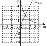 (3)解:在同一平面直角坐标系中分别画出y=(m>0)与y=2m(m>0)的图象