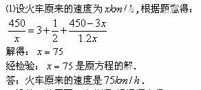 一列火车从车站开出,预计行程450km,当它开出3h后,因特殊任务多停一站,耽误了30min,后来把速度提高了0.2倍,结果准时到达目的地,求这列火车原来的速度.