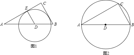 ①如图1,当圆与AC相切时,DE⊥AC时,