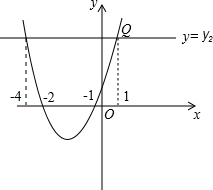 由图象得到:当y1>y2时,a>1或a<-4.