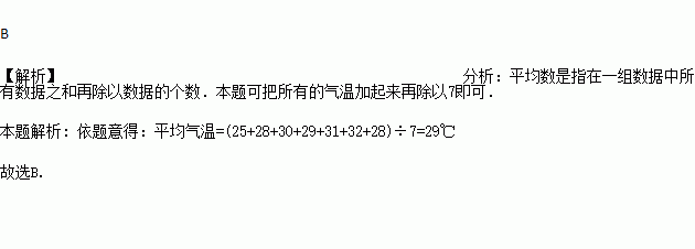 )分别为25,28,30,29,31,32,28,这周的日最高气温的平均值为( ).