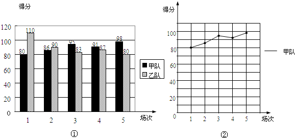 (1)在图②中画出折线统计图表示乙队这5场比赛成绩的变化情况;