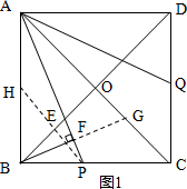 分析 (1)如图1,延长BF交AC于点G,易证△AOE≌△BOG,BG=AE,易证△ABG为等腰三角形,由于AP平分∠BAC,所以AE=BG=2BF;