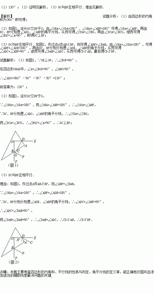 (2)若DC、BP分别是∠ADO、∠ABF的角平分线,如图1.求证:DC⊥BP;