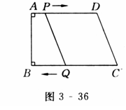 如图3-36所示,在直角梯形ABCD中,AD∥BC,∠B=90°,AD=24 ㎝,BC=26㎝,动点P从点A开始沿AD边以每秒1㎝的速度向D点运动,动点Q从点C开始沿CB边以每秒3㎝的速度向B运动,P,Q分别从A,C同时出发,当其中一点到达端点时,另一点也随