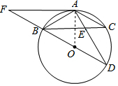 (2)连接OA,在Rt△ABD中可求得BD,可证明△AOB为等腰三角形,结合BF=BO可证明∠OAF=90°,证得结论.