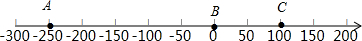 (2)由(1)中的数轴知,小明家与书店的距离100-(-250)=350米;