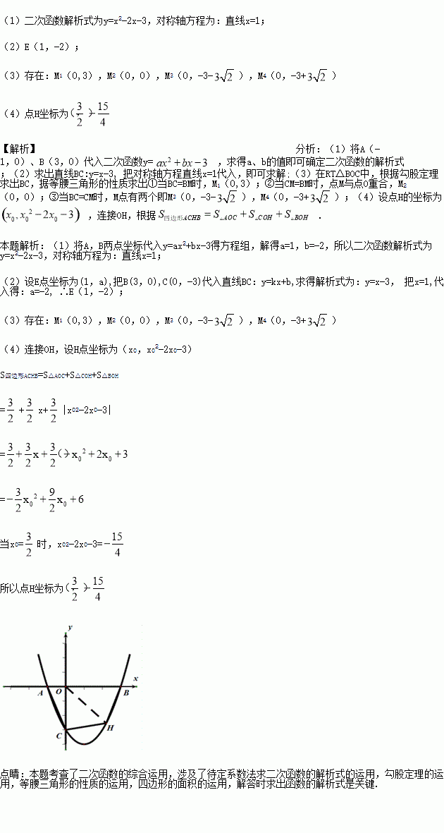 (4)在第四象限内抛物线上是否存一点H,使得四边形ACHB的面积最大,若存在,求出点H坐标,若不存在,说明理由.