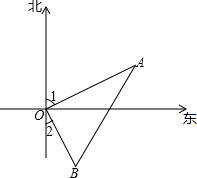 解答 解:如图所示,∠1=75°,∠2=15°,故∠AOB=90°,即△AOB是直角三角形,OA=16×1.5=24(海里),OB=12×1.5=18(海里),由勾股定理得AB=$\sqrt{O{A}^{2}+O{B}^{2}}$=$\sqrt{2{4}^{2}+1{8}^{2}}$=30(海里).答:它们出发1.5小时后两船的距离为30海里.