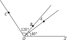 如图,已知射线OX,当OX绕端点O按逆时针方向旋转30°到OA时,如果线段OA的长是2cm,那么点A用记号A(2,30°)表示.画出两点B(1,40°),C(3,120°)的位置.