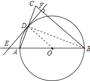 解答 解:(1)直线DE与⊙O相切;理由如下:![]()