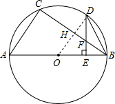 分析:(1)连接OD交BC于点H,由全等三角形的判定定理得出△OBH≌△ODE,故∠OHB=∠C=90°,OH是△ABC的中位线,由中位线的性质即可得出结论;