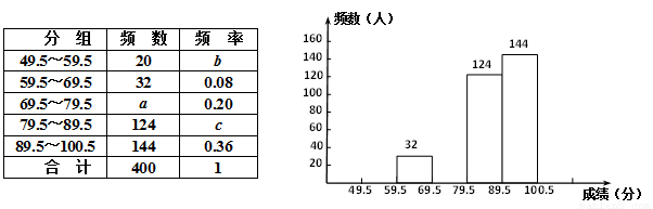 某县九年级有15000名学生参加安全应急预案知识竞赛活动,为了了解本次知识竞赛的成绩分布情况,从中抽取了400名学生的得分(得分取正整数,满分100分)进行统计: