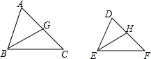 已知,△ABC∽△DEF,BG、EH分别是△ABC和△DEF的角平分线,BC=6cm,EF=4cm,BG=4.8cm.求EH的长.