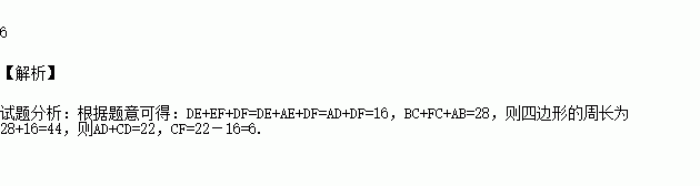 如图,平行四边形ABCD中,点E在边AD上,以BE为折痕,将△ABE折叠,使点A正好与CD上的F点重合,若△FDE的周长为16,△FCB的周长为28,则FC的长为 .